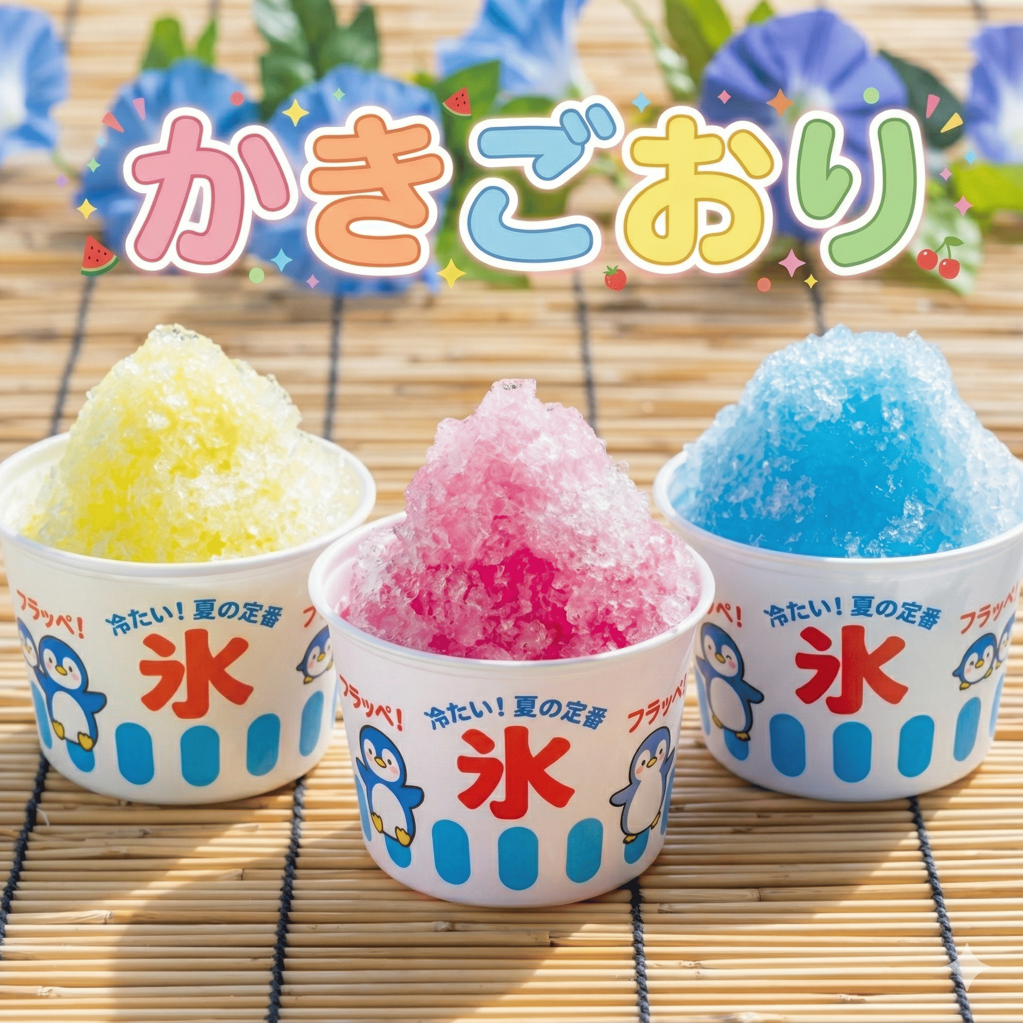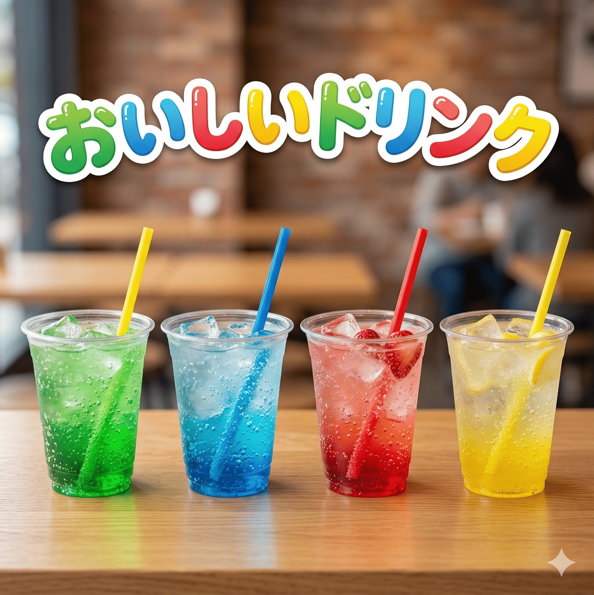 写真映え間違いなしのカラフルな4種のソーダ、冷たいかき氷でリフレッシュするのもおすすめです。